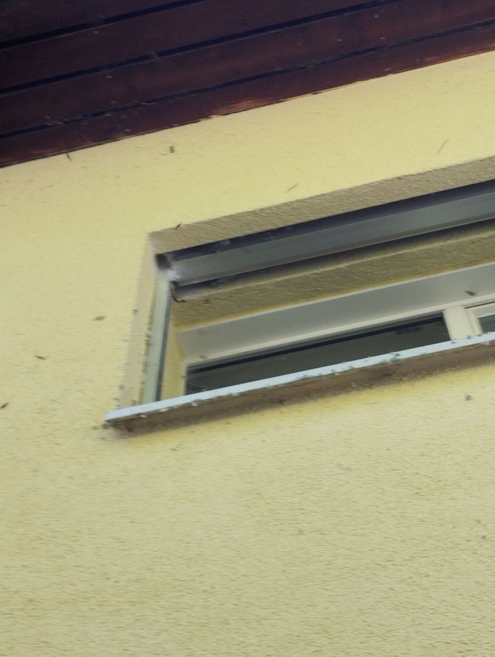 Ort: Regengeschützte Stellen meistens in und am Haus, Dachgiebel, Schuppen, Astgabeln |